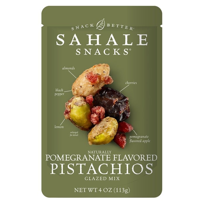 Sahale Snacks® Pomegranate pistachios With Almonds, Cherries + Black Pepper Premium Blend.